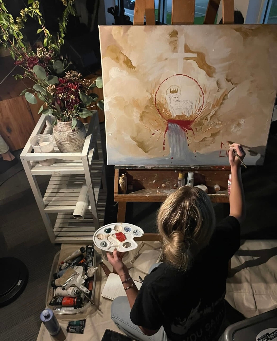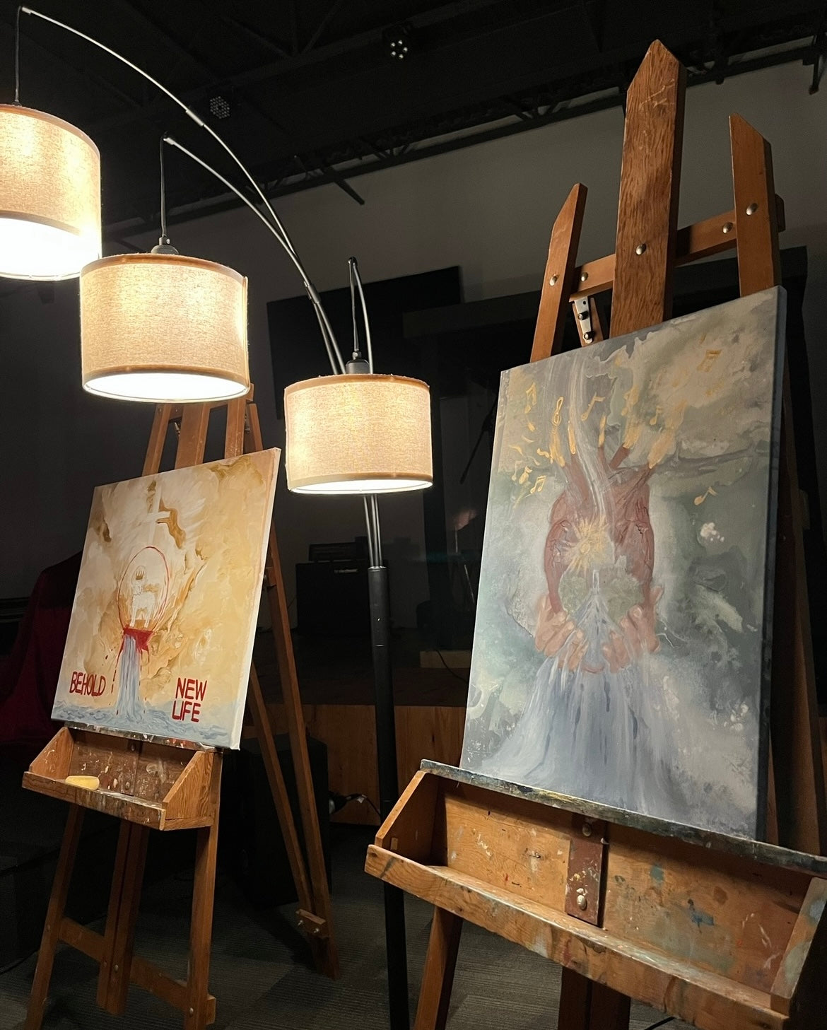 My calling is to co-create with our Creator to portray His heart for His people through the images He gives me. Each brushstroke acts as a prayer and an offering of thanks, flowing from my heart rising fragrantly to His throne room. Each painting represents a physical embodiment of the internal artwork He's creating within my heart. My hope is that this visual expression of worship will allow people to encounter the Father's love for them afresh.