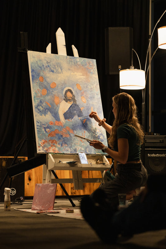 My calling is to co-create with our Creator to portray His heart for His people through the images He gives me. Each brushstroke acts as a prayer and an offering of thanks, flowing from my heart rising fragrantly to His throne room. Each painting represents a physical embodiment of the internal artwork He's creating within my heart. My hope is that this visual expression of worship will allow people to encounter the Father's love for them afresh.